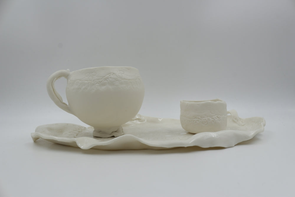 Ensemble de porcelaine composé d'une petite assiette, d'un petit bol et d'une tasse avec anse